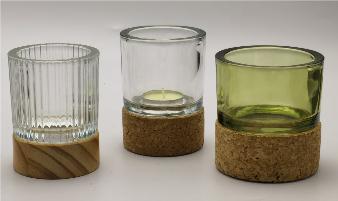 Glass candle holder with cork base